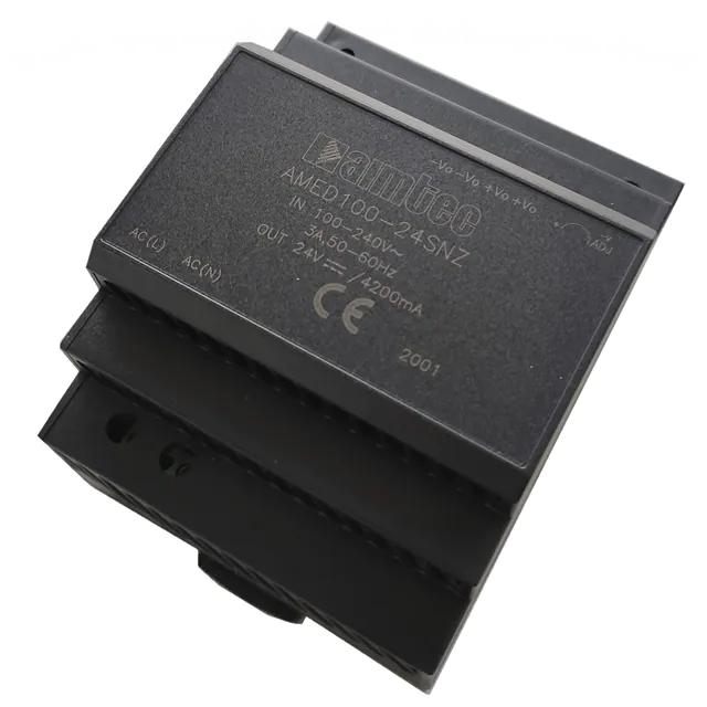 This is manufactured by aimtec. The manufacturer part number is AMED100-24SNZ. Moreover, it corresponds to amed100, a base product number of the product. It is assigned with possible HTSUS value of 8504.40.9520. The product is rohs3 compliant. The product features power and watts of 100.8w. The maximum product's output current is 4.2a. It carries ac or dc input type. The product is widely employed in ite (commercial). It has a 24v output voltage. 24v of voltage output 2. It is a highly efficient product with an 90% of high efficiency. It is shipped in box. Does it require minimum load? no. The product's diameters include 2.76" l x 2.28" w x 3.65" h (70.1mm x 57.9mm x 92.7mm). 4 kv of isolation voltage. Its typical moisture sensitivity level is 1 (unlimited). The splendid features of the product include adjustable output, universal input. The product amed100-nz (100w), is a highly preferred choice for users. The product has -40°c ~ 70°c operating temperature range. Standard number include: 62368-1. Additionally, the product is supplied with 1 outputs. The product is designated with the ear99 code number