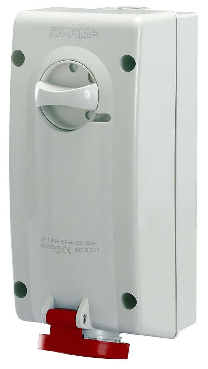 This is Switchable IP44 Industrial Interlock Socket 3P+N+E Earthing Position 6h 16A 415 V manufactured by Scame. The manufacturer part number is 560.1687. The product has a current rating of 16a. The given dimensions of the product include 106 x 136 x 255mm. Moreover, the product has a nominal 415 v voltage rating. Its accurate length is 106mm. Furthermore, the product is 136mm wide. The product comes in 255mm depth. The product's body is nicely designed from plastic materials.