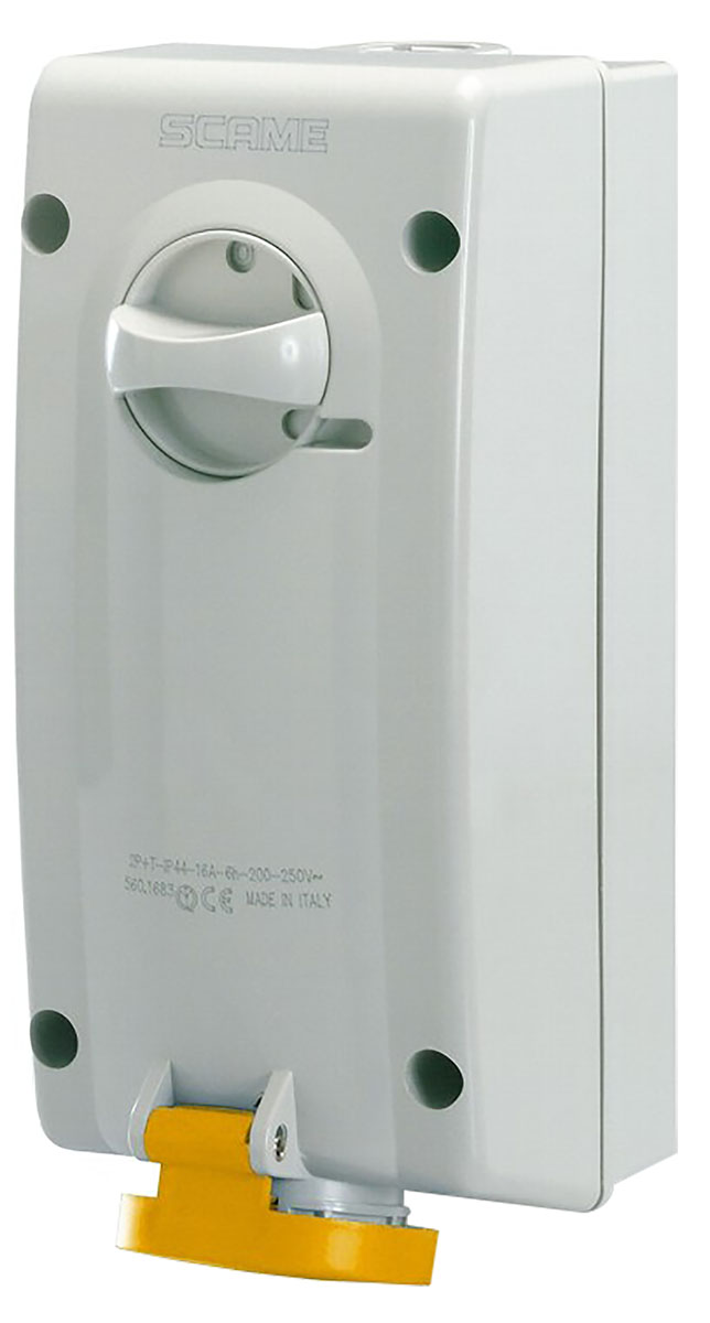 This is Switchable IP44 Industrial Interlock Socket 2P+E Earthing Position 4h 32A 130 V manufactured by Scame. The manufacturer part number is 560.3270. The product has a current rating of 32a. The given dimensions of the product include 106 x 136 x 266mm. Moreover, the product has a nominal 130 v voltage rating. Its accurate length is 106mm. Furthermore, the product is 136mm wide. The product comes in 266mm depth. The product's body is nicely designed from plastic materials.
