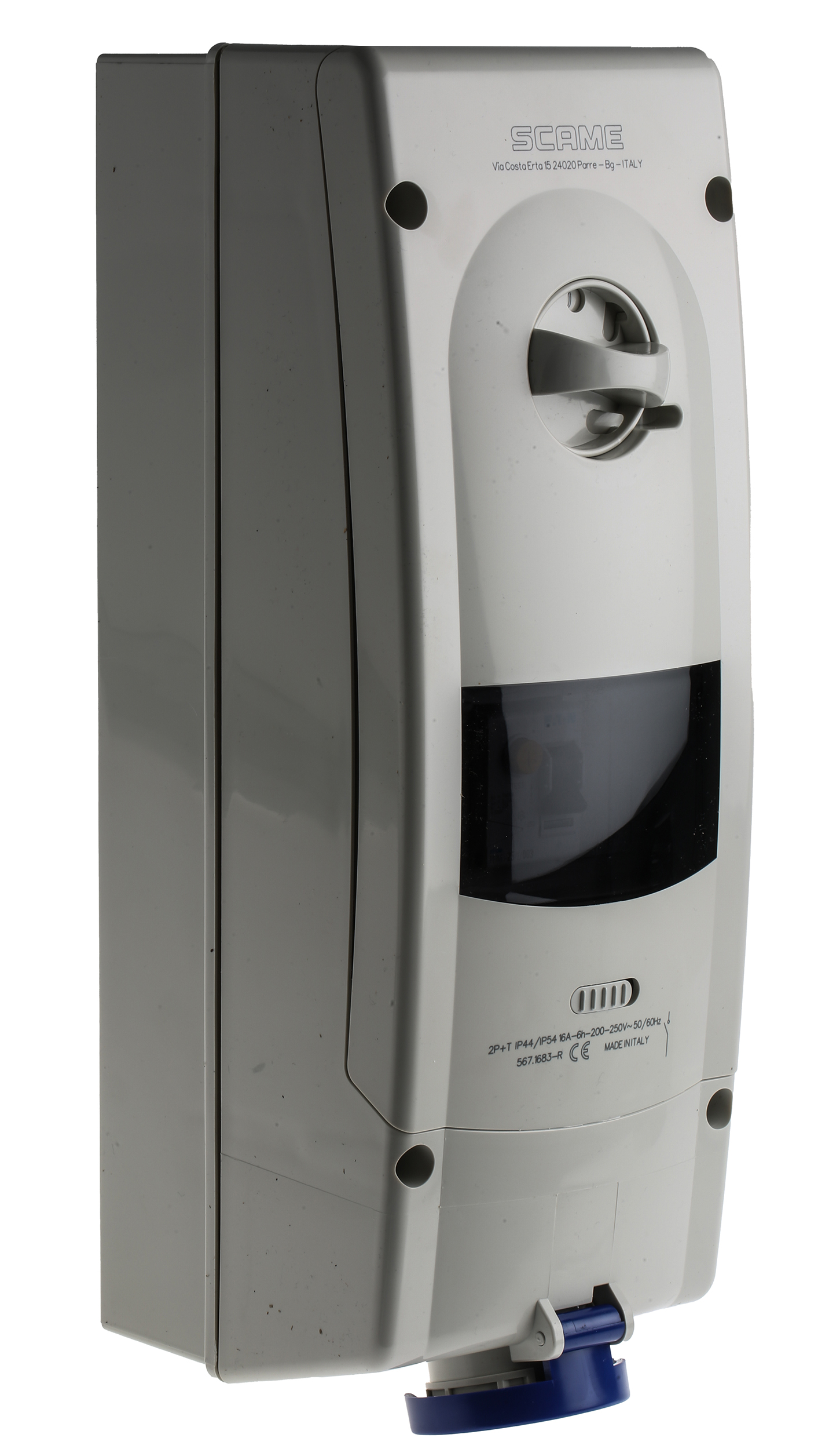 This is Switchable IP44 Industrial Interlock Socket 2P+E Earthing Position 6h 16A 230 V manufactured by Scame. The manufacturer part number is 567.1683-R. The product has a current rating of 16a. The given dimensions of the product include 136 x 166 x 486mm. Moreover, the product has a nominal 230 v voltage rating. Its accurate length is 136mm. Furthermore, the product is 166mm wide. The product comes in 486mm depth. The product's body is nicely designed from plastic materials.