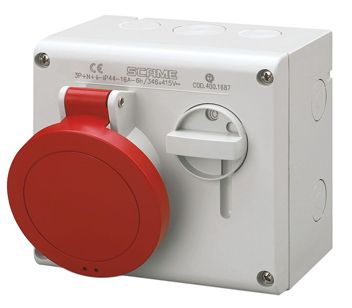 This is Switchable IP44 Industrial Interlock Socket 3P+E Earthing Position 6h 16A 415 V manufactured by Scame. The manufacturer part number is 500.1686. The product has a current rating of 16a. The given dimensions of the product include 136 x 120 x 125mm. Moreover, the product has a nominal 415 v voltage rating. Its accurate length is 136mm. Furthermore, the product is 120mm wide. The product comes in 125mm depth. The product's body is nicely designed from thermoplastic rubber materials.