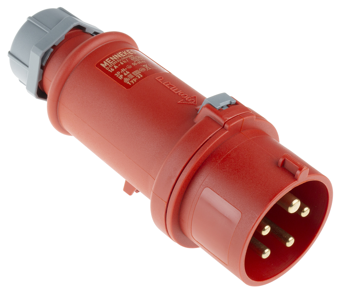 This is IP44 Red Cable Mount 5P Industrial Power Plug Rated At 16A 400 V manufactured by Mennekes. The manufacturer part number is 33. The product has a current rating of 16a. The product is available in cable mount configuration. In addition, male is the available "Gender" of the product. Moreover, the product has a nominal 400 v voltage rating. Whereas, the minimum operating temperature of the product is -25. It has a maximum operating temperature of +55°c.