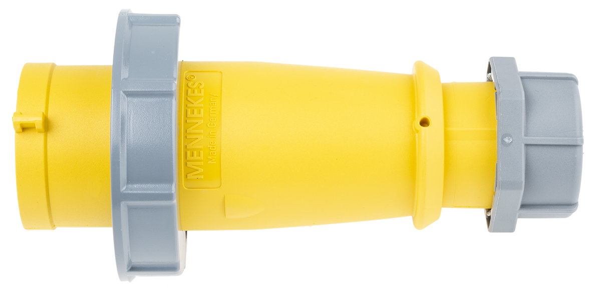 This is AM-TOP Series IP67 Yellow Cable Mount 3P Industrial Power Plug Rated At 32A 110 V manufactured by Mennekes. The manufacturer part number is 289. The product has a current rating of 32a. The product is available in cable mount configuration. In addition, male is the available "Gender" of the product. Moreover, the product has a nominal 110 v voltage rating. Whereas, the minimum operating temperature of the product is -25°c. The product am-top, is a highly preferred choice for users. It has a maximum operating temperature of +55°c.