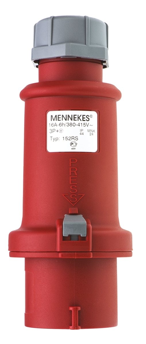 This is ProTOP Series IP44 Red Cable Mount 4P Industrial Power Plug Rated At 16A 400 V manufactured by Mennekes. The manufacturer part number is 152A. The product has a current rating of 16a. The product is available in cable mount configuration. In addition, male is the available "Gender" of the product. Moreover, the product has a nominal 400 v voltage rating. Whereas, the minimum operating temperature of the product is -25. The product protop, is a highly preferred choice for users. It has a maximum operating temperature of +55°c.