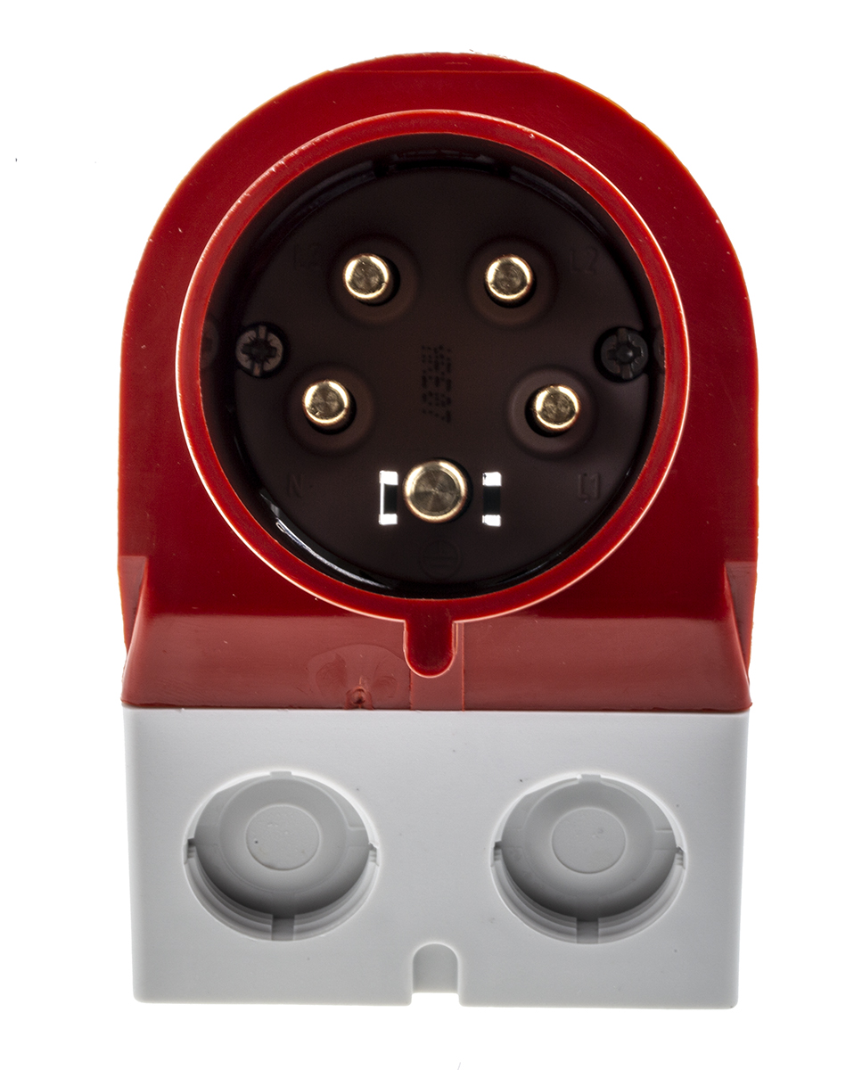 This is IP44 Red Wall Mount 5P Right Angle Industrial Power Plug Rated At 32A 400 V manufactured by Mennekes. The manufacturer part number is 354. The product has a current rating of 32a. The product is available in wall mount configuration. In addition, male is the available "Gender" of the product. Moreover, the product has a nominal 400 v voltage rating. Whereas, the minimum operating temperature of the product is -25. It has a maximum operating temperature of +55°c.