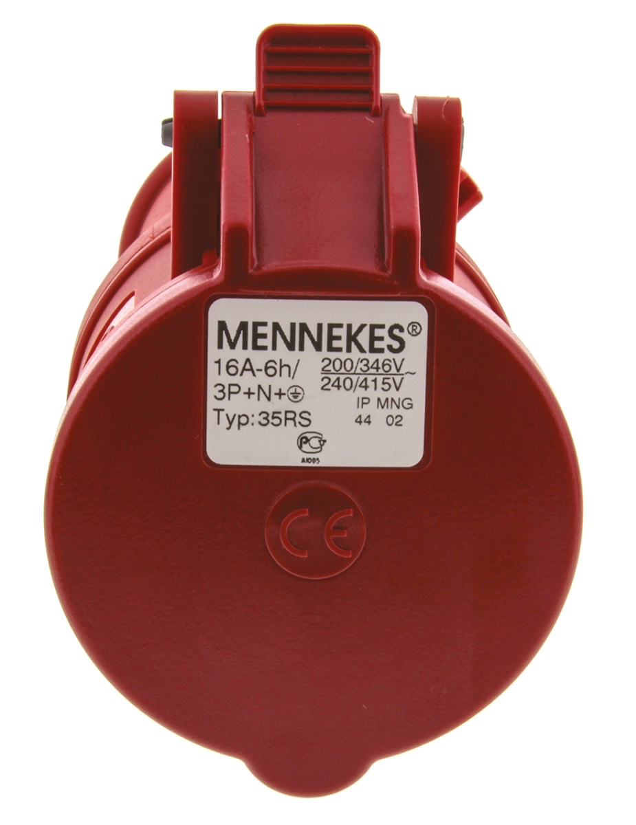 This is IP44 Red Cable Mount 5P Industrial Power Socket Rated At 16A 400 V manufactured by Mennekes. The manufacturer part number is 35. The product has a current rating of 16a. The product is available in cable mount configuration. In addition, female is the available "Gender" of the product. Moreover, the product has a nominal 400 v voltage rating. Whereas, the minimum operating temperature of the product is -25. It has a maximum operating temperature of +55°c.