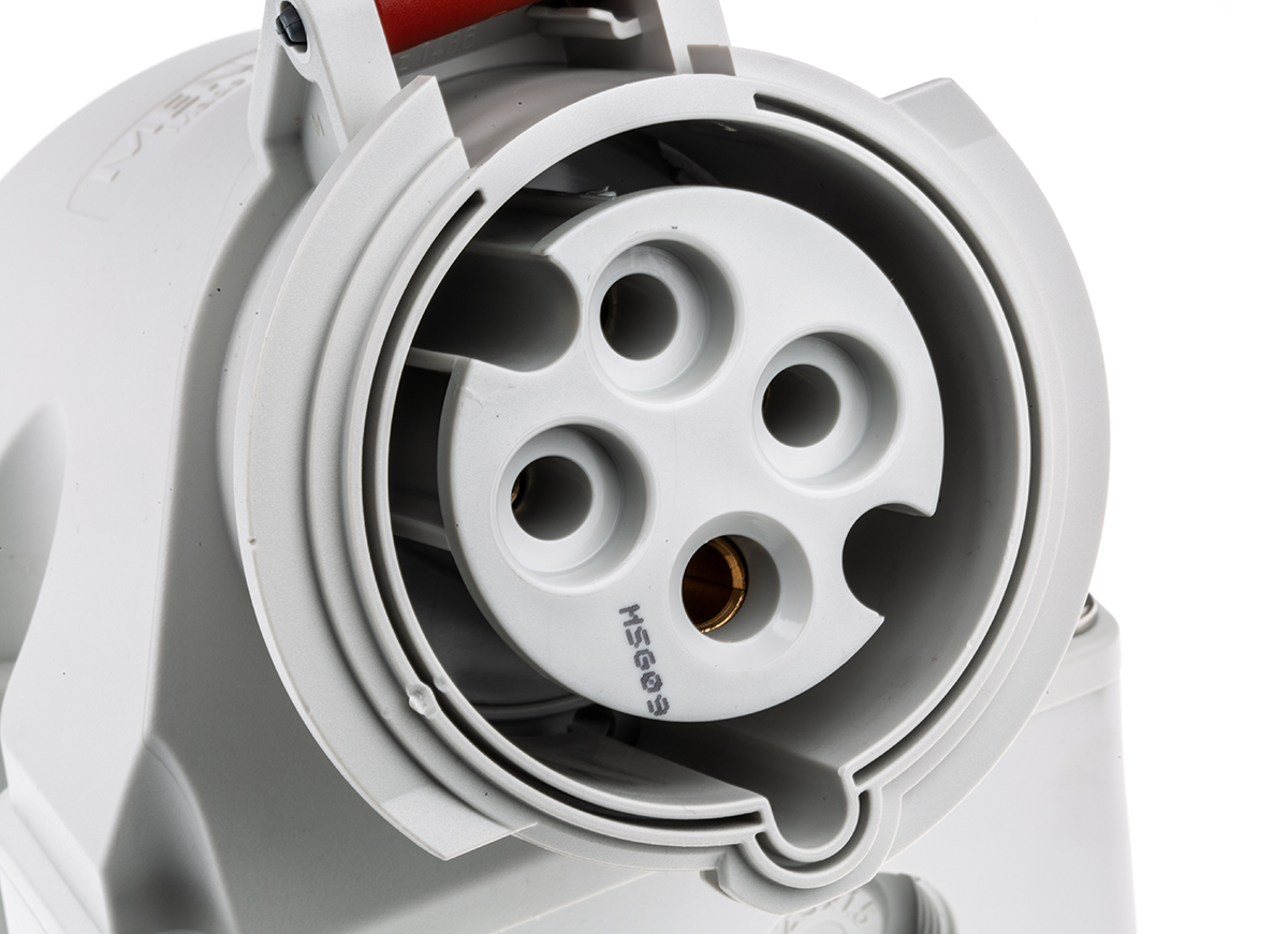 This is IP67 Red Wall Mount 3P+E Industrial Power Socket Rated At 32A 415 V manufactured by Mennekes. The manufacturer part number is 9372. The product has a current rating of 32a. The product is available in wall mount configuration. In addition, female is the available "Gender" of the product. Moreover, the product has a nominal 400 v voltage rating. Whereas, the minimum operating temperature of the product is -25. It has a maximum operating temperature of +55°c.