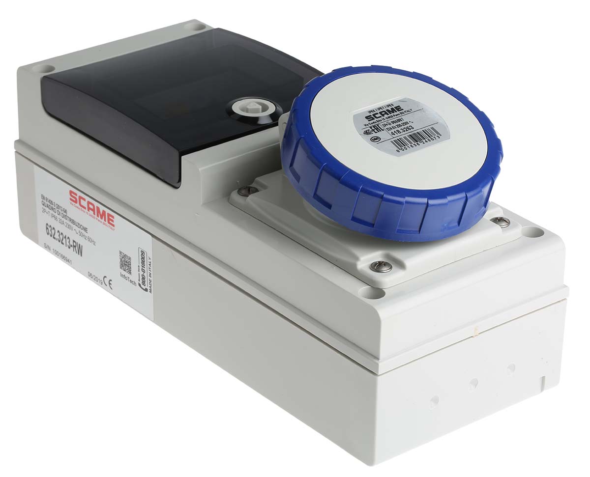 This is IP67 Blue Wall Mount 2P+E Industrial Power Socket Rated At 32.0A 230.0 V manufactured by Scame. The manufacturer part number is 632.3213-RW. The product has a current rating of 32a. The product is available in wall mount configuration. In addition, female is the available "Gender" of the product. Moreover, the product has a nominal 230 v voltage rating.