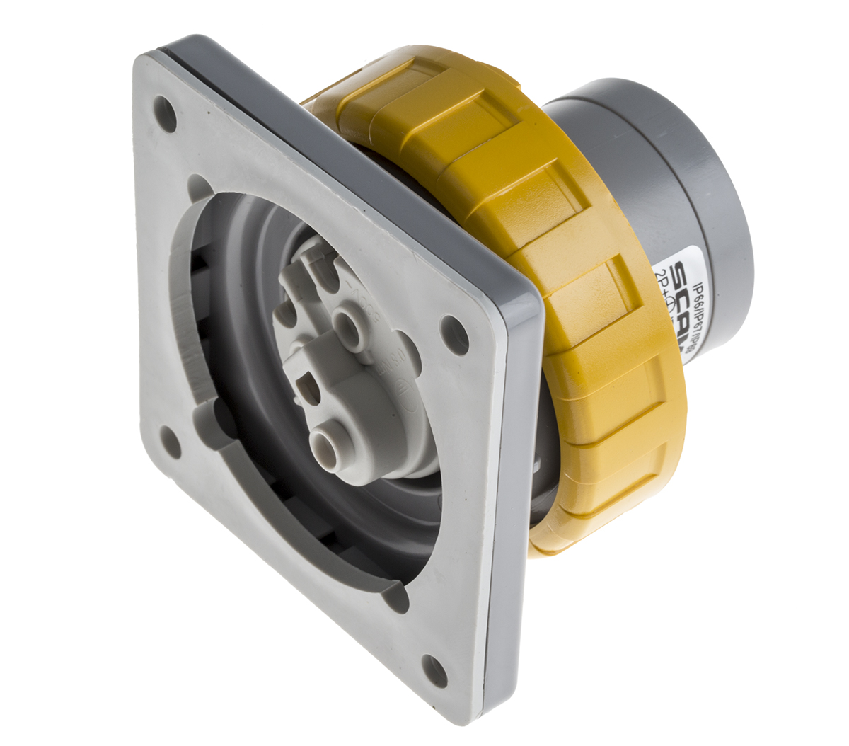 This is IP67 Yellow Panel Mount 2P+E Industrial Power Plug Rated At 16.0A 110.0 V manufactured by Scame. The manufacturer part number is 248.1690. The product has a current rating of 16a. The product is available in panel mount configuration. In addition, male is the available "Gender" of the product. Moreover, the product has a nominal 110 v voltage rating.
