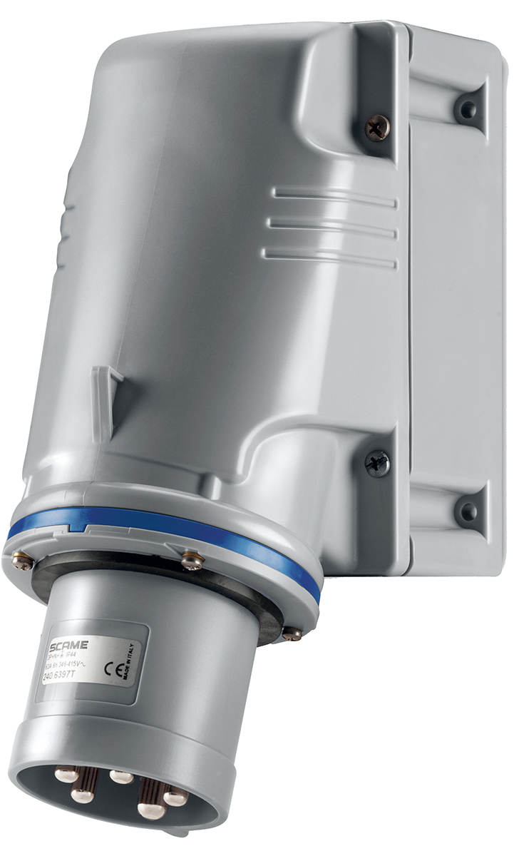 This is IP44 Blue Wall Mount 2P+E Industrial Power Plug Rated At 63.0A 230.0 V manufactured by Scame. The manufacturer part number is 240.6393T. The product has a current rating of 64a. The product is available in wall mount configuration. In addition, male is the available "Gender" of the product. Moreover, the product has a nominal 230 v voltage rating.