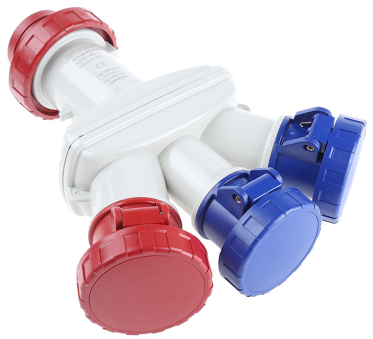 This is IP66 Red Industrial Power Connector Adapter Rated At 16.0A 415.0 V manufactured by Scame. The manufacturer part number is 606.3505-059. The product has a current rating of 16a. Moreover, the product has a nominal 415 v voltage rating.