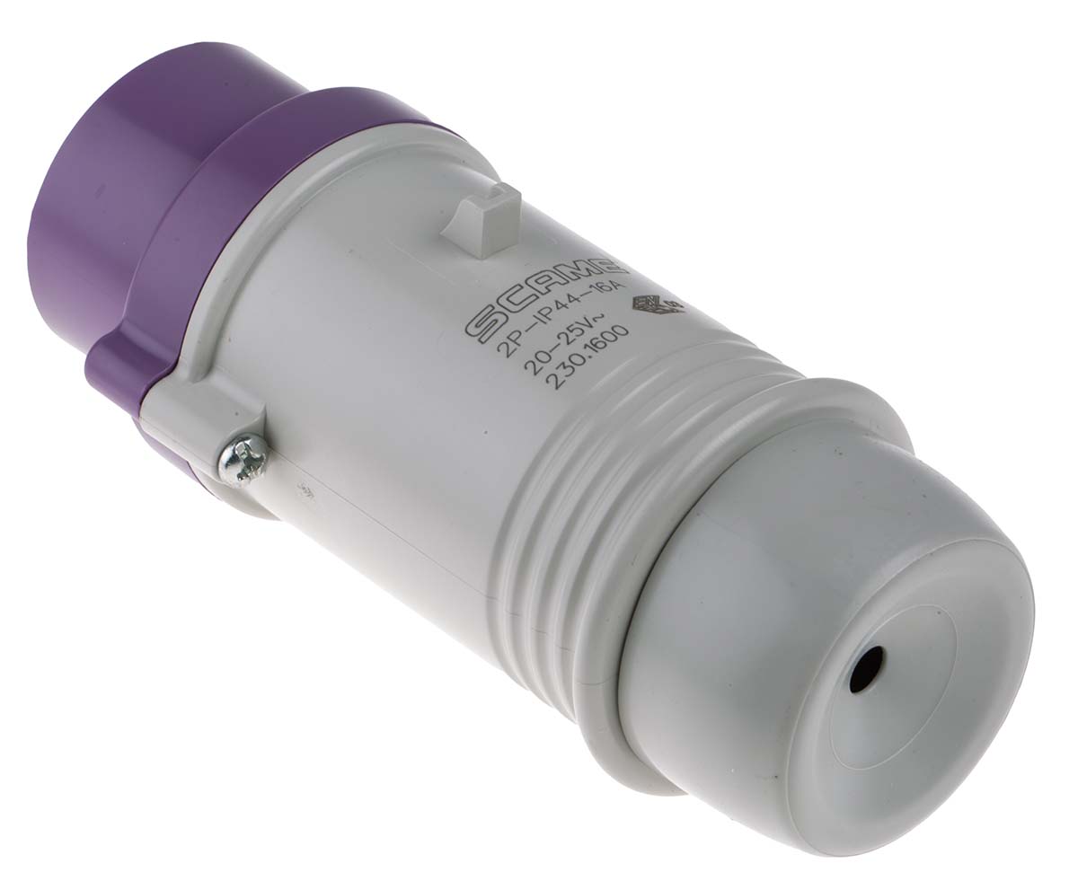 This is IP44 Purple Cable Mount 2P Industrial Power Plug Rated At 16.0A 20 → 25 V manufactured by Scame. The manufacturer part number is 230.1600. The product has a current rating of 16a. The product is available in cable mount configuration. In addition, male is the available "Gender" of the product. Moreover, the product has a nominal 20 → 25 v voltage rating. Whereas, the minimum operating temperature of the product is -25. It has a maximum operating temperature of +40°c.