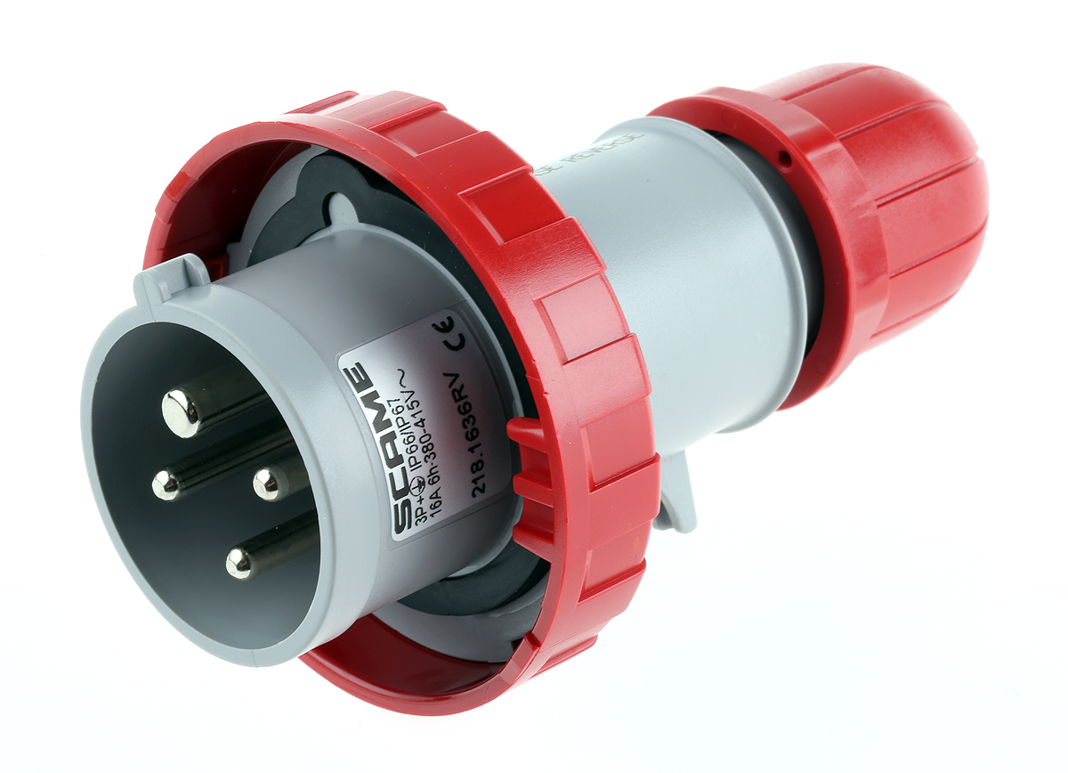 This is IP66 IP67 Red Cable Mount 3P+E Industrial Power Connector Adapter Plug Rated At 16.0A 415.0 VWith Phase manufactured by Scame. The manufacturer part number is 218.1636RV. The product has a current rating of 16a. The product is available in cable mount configuration. In addition, male is the available "Gender" of the product. Moreover, the product has a nominal 415 v voltage rating. Whereas, the minimum operating temperature of the product is -25. It has a maximum operating temperature of +40°c.