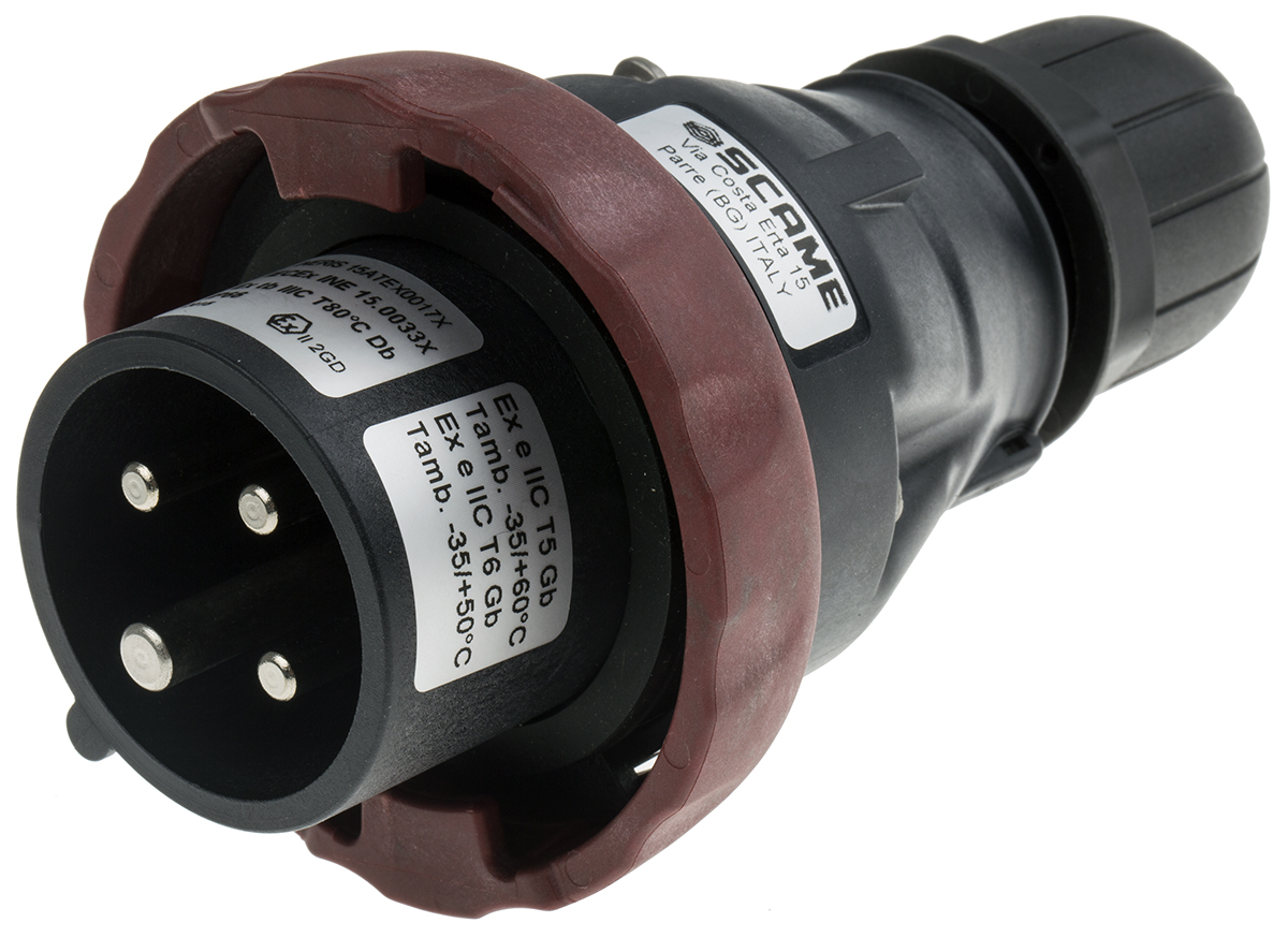 This is IP66 Red Cable Mount 3P+E Power Connector Plug ATEX IECEx Rated At 16.0A 380 → 415 V manufactured by Scame. The manufacturer part number is 219.1636. The product has a current rating of 16a. The product is available in cable mount configuration. In addition, male is the available "Gender" of the product. Moreover, the product has a nominal 380 → 415 v voltage rating.