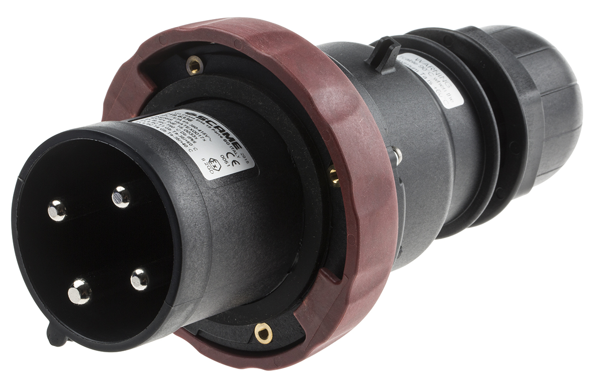 This is IP66 Red Cable Mount 3P+E Power Connector Plug ATEX IECEx Rated At 63.0A 380 → 415 V manufactured by Scame. The manufacturer part number is 219.6336. The product has a current rating of 64a. The product is available in cable mount configuration. In addition, male is the available "Gender" of the product. Moreover, the product has a nominal 380 → 415 v voltage rating.