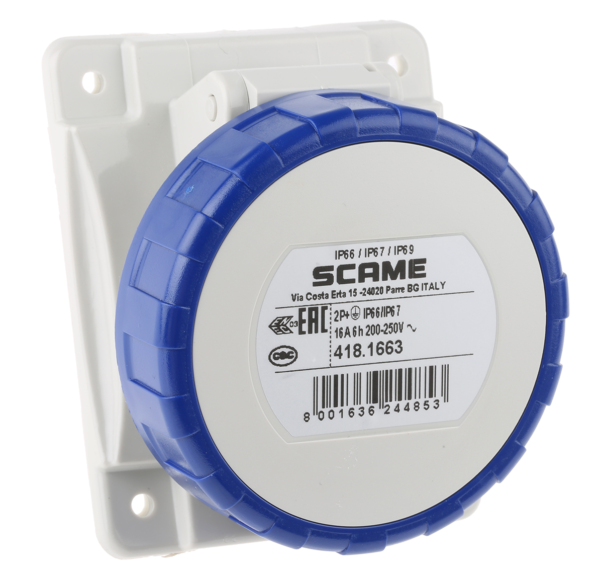 This is IP66 IP67 Yellow Panel Mount 2P+E Heavy Duty Power Connector Socket Rated At 16A 110 V manufactured by Scame. The manufacturer part number is 418.1663. The product has a current rating of 16a. The product is available in panel mount configuration. In addition, female is the available "Gender" of the product. Moreover, the product has a nominal 230 v voltage rating.