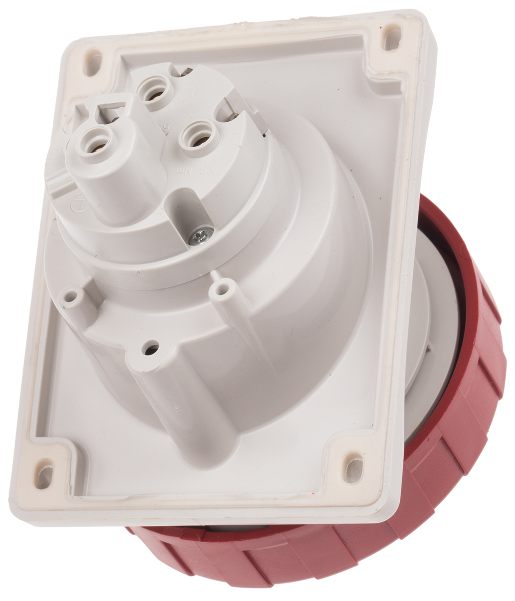 This is IP66 IP67 Red Panel Mount 3P+E Heavy Duty Power Connector Socket Rated At 32A 415 V manufactured by Scame. The manufacturer part number is 418.3267. The product has a current rating of 32a. The product is available in panel mount configuration. In addition, female is the available "Gender" of the product. Moreover, the product has a nominal 415 v voltage rating.