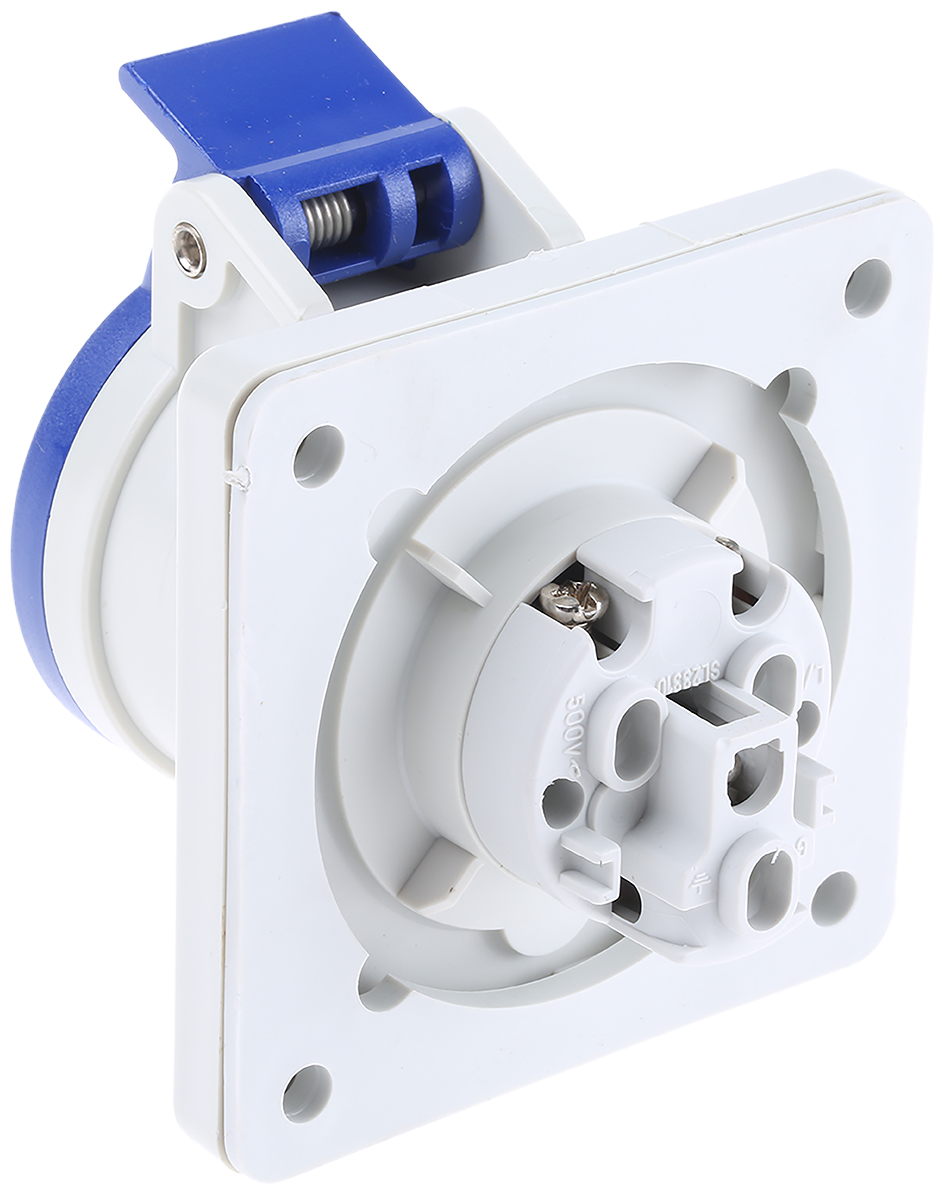 This is IP44 Blue Panel Mount 2P+E Industrial Power Socket Rated At 16A 230 V manufactured by Scame. The manufacturer part number is 422.1663. The product has a current rating of 16a. The product is available in panel mount configuration. In addition, female is the available "Gender" of the product. Moreover, the product has a nominal 230 v voltage rating.