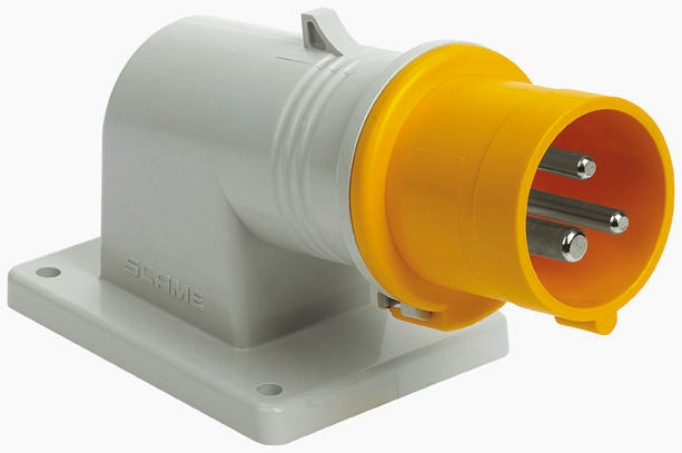 This is IP44 Yellow Wall Mount 2P+E Right Angle Industrial Power Plug Rated At 32A 110 V manufactured by Scame. The manufacturer part number is 242.3290. The product has a current rating of 32a. The product is available in wall mount configuration. In addition, male is the available "Gender" of the product. Moreover, the product has a nominal 110 v voltage rating.