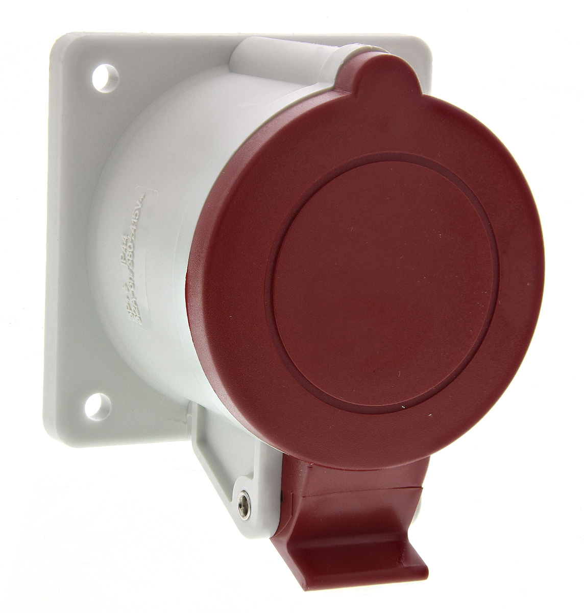 This is IP44 Red Panel Mount 3P+E Industrial Power Socket Rated At 32A 415 V manufactured by Scame. The manufacturer part number is 422.3266. The product has a current rating of 32a. The product is available in panel mount configuration. Moreover, the product has a nominal 415 v voltage rating.