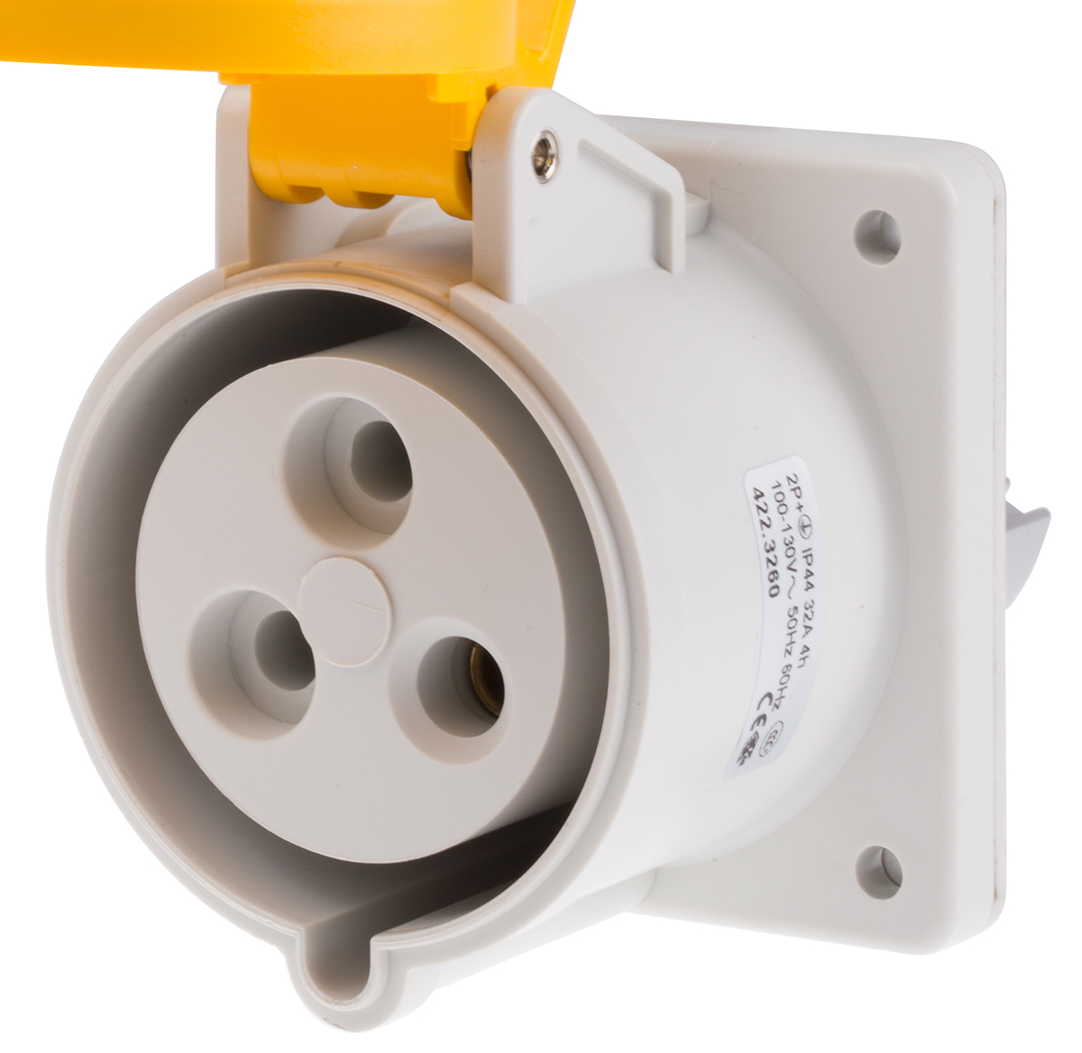 This is IP44 Yellow Panel Mount Socket Rated At 32A 100 → 130 V manufactured by Scame. The manufacturer part number is 422.3260. The product has a current rating of 32a. The product is available in panel mount configuration. Moreover, the product has a nominal 100 → 130 v voltage rating.