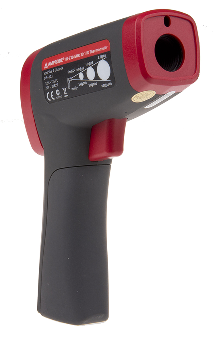 This is IR-730 Infrared Thermometer manufactured by Amprobe. The manufacturer part number is IR-730-EUR. The typical product's weight is 290g. In addition, the height is 169mm. Furthermore, the product is 53mm wide. Its accurate length is 138mm. It responds within 250 ms. Features 0.1 °c, 0.2 °c, 1 °c resolution.