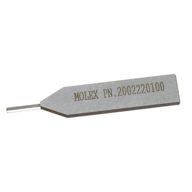 This is manufactured by Molex. The manufacturer part number is 2002220100. This is basically a useful and handy extraction tool. It is assigned with possible HTSUS value of 8205.59.8000. It is shipped in bulk. The product stak50h, is a highly preferred choice for users. Its typical moisture sensitivity level is not applicable. The product is suitable for use with rectangular contacts, 22-26 awg. It has a long 5 weeks standard lead time. Moreover, it corresponds to 200222, a base product number of the product. The product is designated with the ear99 code number