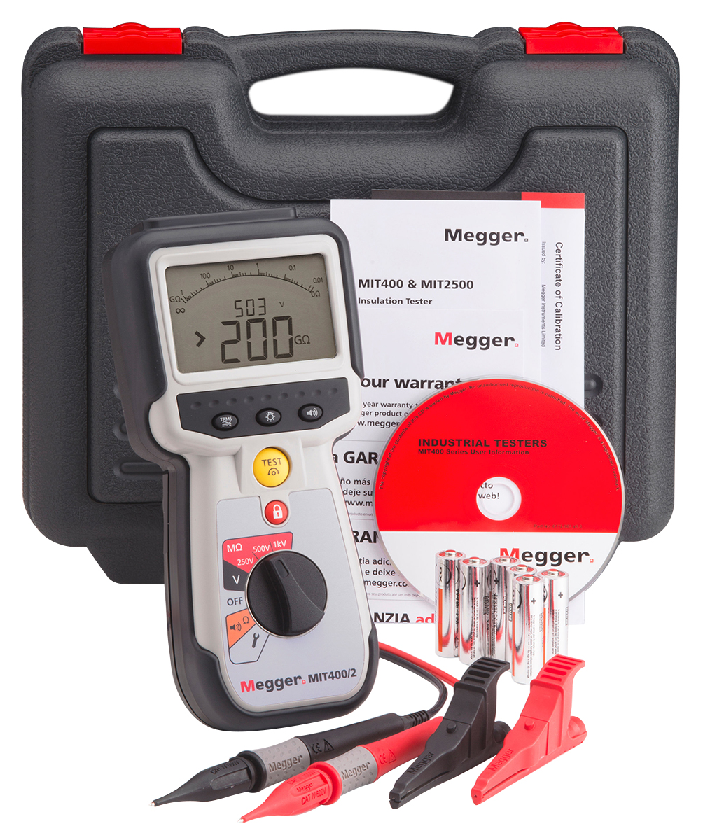 This is MIT400 2 Insulation Tester 20GΩ CAT IV 600 V UKAS Calibration manufactured by Megger. The manufacturer part number is 1004-731. It features a remarkable analogue, dual digital display. The given dimensions of the product include 92 x 50 x 220mm. The typical product's weight is 775g. In addition, the height is 220mm. Furthermore, the product is 50mm wide. Its accurate length is 92mm. Whereas, the minimum operating temperature of the product is -20°c. It has a maximum operating temperature of +55°c.