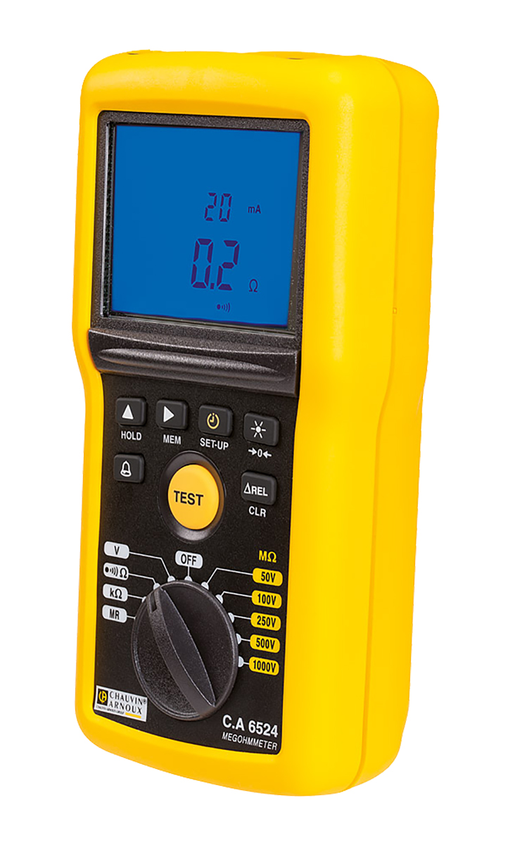 This is C.A 6524 Insulation Tester 200GΩ CAT IV 600 V manufactured by Chauvin Arnoux. The manufacturer part number is P01140824. It features a remarkable backlit digital lcd display. The given dimensions of the product include 108 x 60 x 211mm. The typical product's weight is 850g. In addition, the height is 211mm. Furthermore, the product is 60mm wide. Its accurate length is 108mm. Whereas, the minimum operating temperature of the product is -20°c. It has a maximum operating temperature of +55°c.