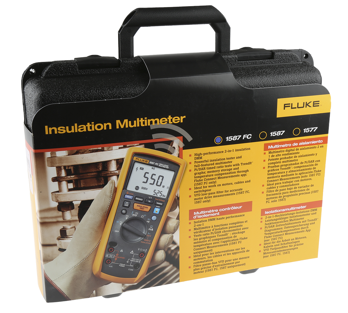 This is 1587 Insulation Tester 2GΩ CAT III 1000 V CAT IV 600 V manufactured by Fluke. The manufacturer part number is 2491945. It features a remarkable digital display. The given dimensions of the product include 203 x 100 x 50mm. The typical product's weight is 624g. In addition, the height is 50mm. Furthermore, the product is 100mm wide. Its accurate length is 203mm. Whereas, the minimum operating temperature of the product is -20°c. It has a maximum operating temperature of +55°c.