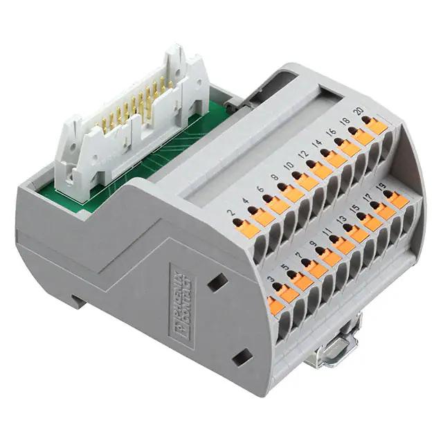 This is manufactured by Phoenix Contact. The manufacturer part number is 2903790. It is assigned with possible HTSUS value of 8536.69.8000. The product is rohs compliant. Furthermore, the product is 2.839" (72.11mm) wide. The product has -20°c ~ 50°c operating temperature range. Control Side Connection - rectangular, male. It also exhibits voltage rating of 60vac/dc. It is shipped in bulk. Moreover, the product has a wire gauge of 14-26 awg. The process side connection includes terminal blocks - spring connection. Its typical moisture sensitivity level is 1 (unlimited). Its accurate length is 2.248" (57.10mm). It has a long 14 weeks standard lead time. The product varioface, vip, is a highly preferred choice for users. The product is designated with the ear99 code number