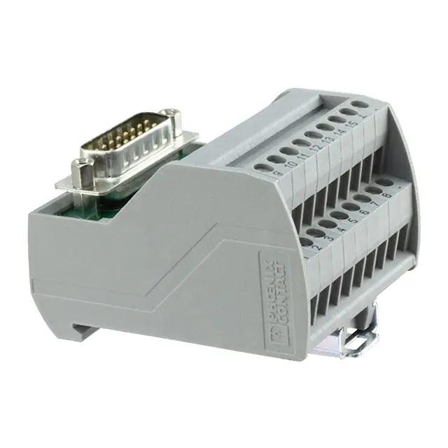 This is manufactured by Phoenix Contact. The manufacturer part number is 2322155. The product contains 15 contacts. The product has a current rating of 2.5a. The given dimensions of the product include 65.5 x 50 x 45.1mm. The product is available in din rail mount configuration. Moreover, the product has a nominal 24 v dc voltage rating. In addition, male is the available "Gender" of the product. Its accurate length is 65.5mm. d-sub Connector type offer robust functionality. Furthermore, the product is 50mm wide. The product comes in 45.1mm depth. Whereas, the minimum operating temperature of the product is -20°c. It has a maximum operating temperature of +50°c. It is assigned with possible HTSUS value of 8536.90.4000. The product is rohs3 compliant. Furthermore, the product is 2.579" (65.50mm) wide. The product has -20°c ~ 50°c operating temperature range. Control Side Connection - d-sub, male. It also exhibits voltage rating of 24vdc. In addition, it is reach affected. It is shipped in bulk. Moreover, the product has a wire gauge of 12-24 awg. The process side connection includes terminal blocks - screw connection. Its typical moisture sensitivity level is 1 (unlimited). Its accurate length is 1.969" (50.01mm). It has a long 14 weeks standard lead time. The splendid features of the product include led. The product varioface, vip, is a highly preferred choice for users. The product is designated with the ear99 code number