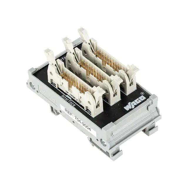 This is manufactured by WAGO Corporation. The manufacturer part number is 704-9004. It is assigned with possible HTSUS value of 8536.90.4000. The product is rohs3 compliant. Furthermore, the product is 1.772" (45.00mm) wide. The product has -20°c ~ 50°c operating temperature range. Control Side Connection - rectangular, male - din 41651. It also exhibits voltage rating of 24vdc. It is shipped in bulk. The process side connection includes rectangular, male (2). Its typical moisture sensitivity level is not applicable. It has a long 12 weeks standard lead time. The product is designated with the ear99 code number