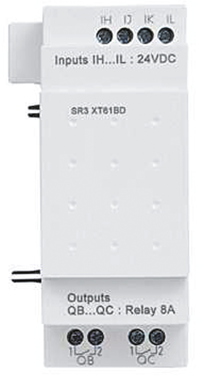 This is Expansion Module 24 V ac for use with Zelio Logic 2 Smart Relay manufactured by Schneider Electric. The manufacturer part number is SR3XT61B. It is a type of expansion module 6 i/o accessory.