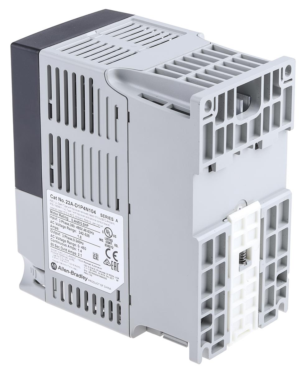 This is PowerFlex 4 Inverter Drive 0.4 kW 3-Phase In 380 → 480 V ac 1.4 A 240Hz Out ModBus IP20 manufactured by Allen Bradley. The manufacturer part number is 22A-D1P4N104. The product has a current rating of 1.4 a. The product powerflex 4, is a highly preferred choice for users.