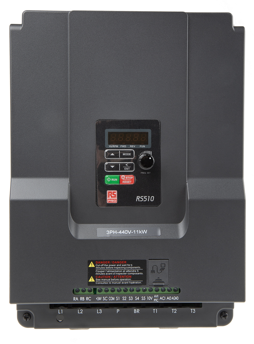 This is Inverter Drive 11kW Filter 24.0A manufactured by RS Pro. The manufacturer part number is 174-8222. The product has a current rating of 26.4 a. The product features a vector control drive. A bespoke product is ptc interface.