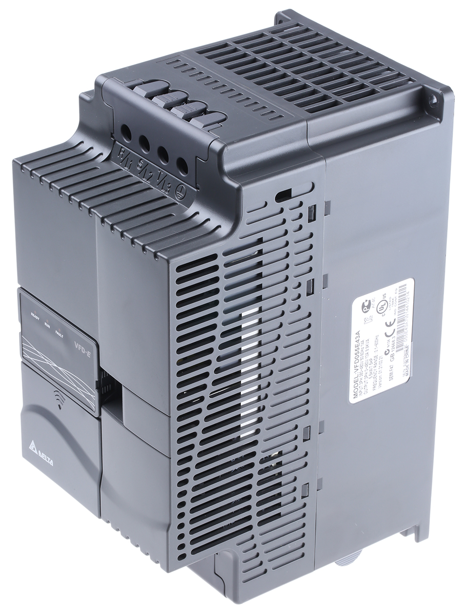 This is VFD-E Inverter Drive 3-Phase In 0 → 600 Hz Out 5.5 kW 460 V ac 14 A manufactured by Delta Electronics. The manufacturer part number is VFD055E43A. The product has a current rating of 14 a. The product vfd-e, is a highly preferred choice for users.