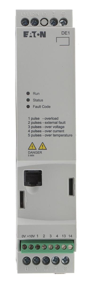 This is DE11 Variable Speed Starter 1-Phase In 60Hz Out 1.5 kW 230 V ac 7 A manufactured by Eaton. The manufacturer part number is 180654 DE11-127D0FN-N20N. The product has a current rating of 7 a. The product is available in din rail configuration. The product eaton moeller, is a highly preferred choice for users. The product features a variable speed drive.