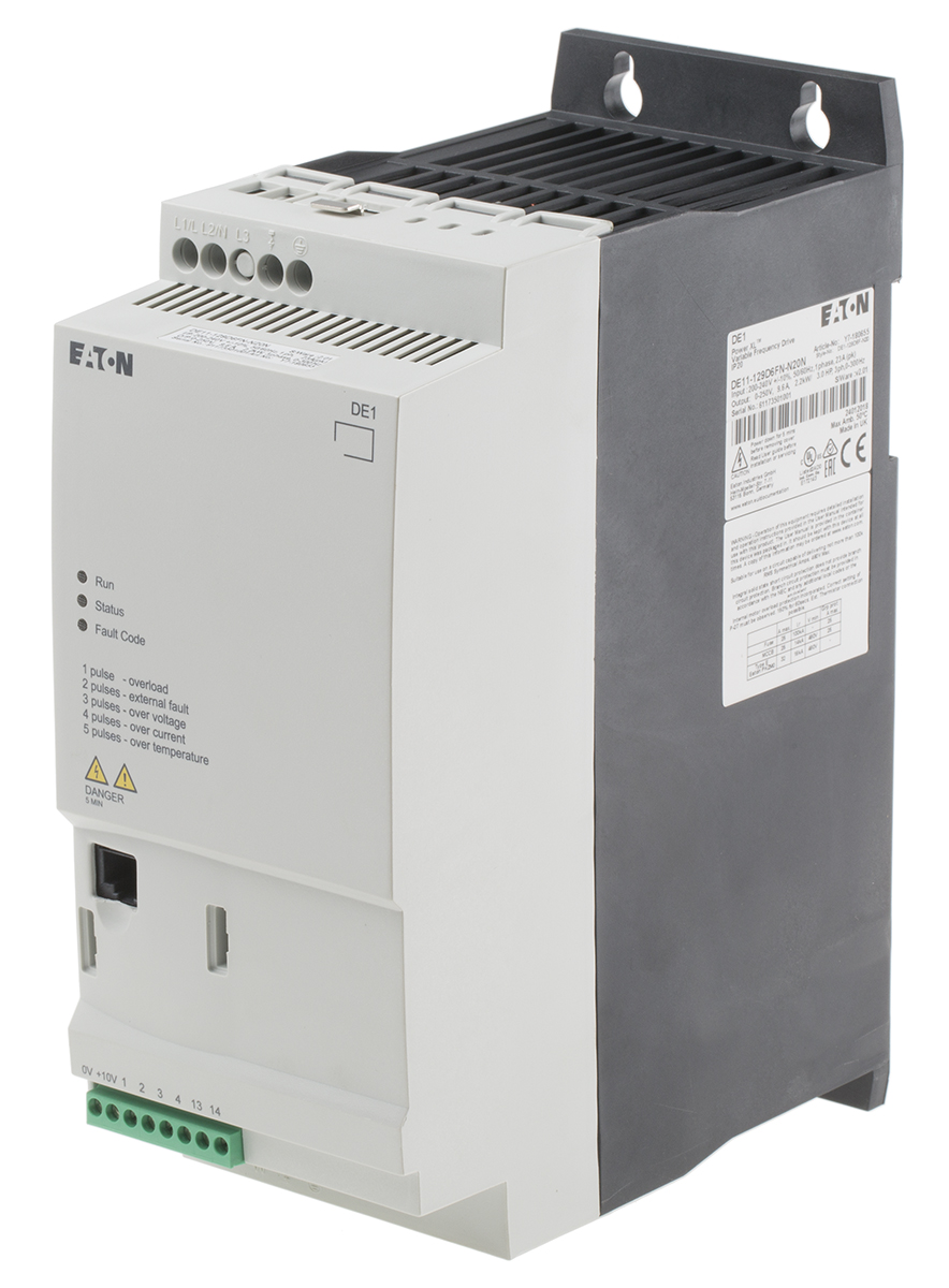 This is PowerXL DE11 Variable Speed Starter 1-Phase In 60Hz Out 2.2 kW 230 V ac 9.6 A manufactured by Eaton. The manufacturer part number is 180655 DE11-129D6FN-N20N. The product has a current rating of 9.6 a. The product is available in din rail configuration. The product eaton moeller, is a highly preferred choice for users. The product features a variable speed drive. A bespoke product is rs 485 interface.