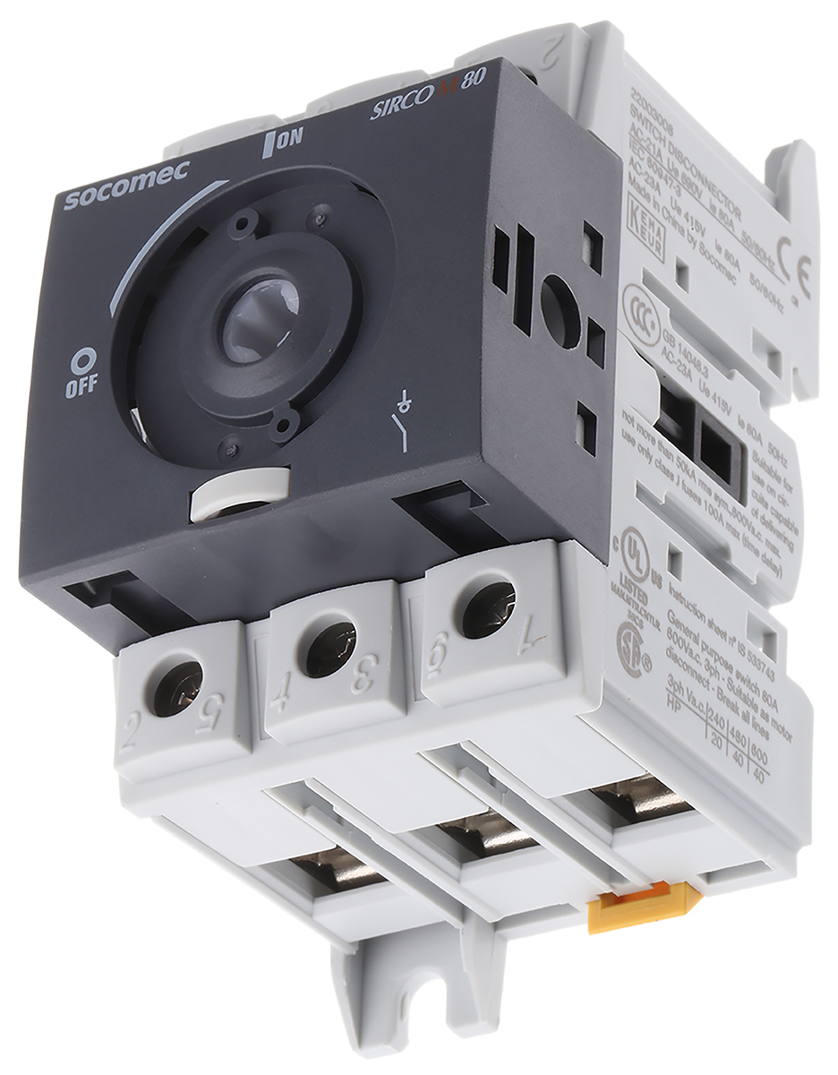This is 3 Pole DIN Rail Non Fused Isolator Switch NO/3NC (Auxiliary) 80 A 37 kW manufactured by Socomec. The manufacturer part number is 2200 3008. Whereas, the minimum operating temperature of the product is -25°c. The product sirco m, is a highly preferred choice for users. Moreover, the product has a nominal 690v ac voltage rating. Its accurate length is 52.5mm. Furthermore, the product is 76mm wide. The product comes in 408mm depth. It has a maximum operating temperature of +70°c. It has equipped with 3p poles. The terminal is a screw type.
