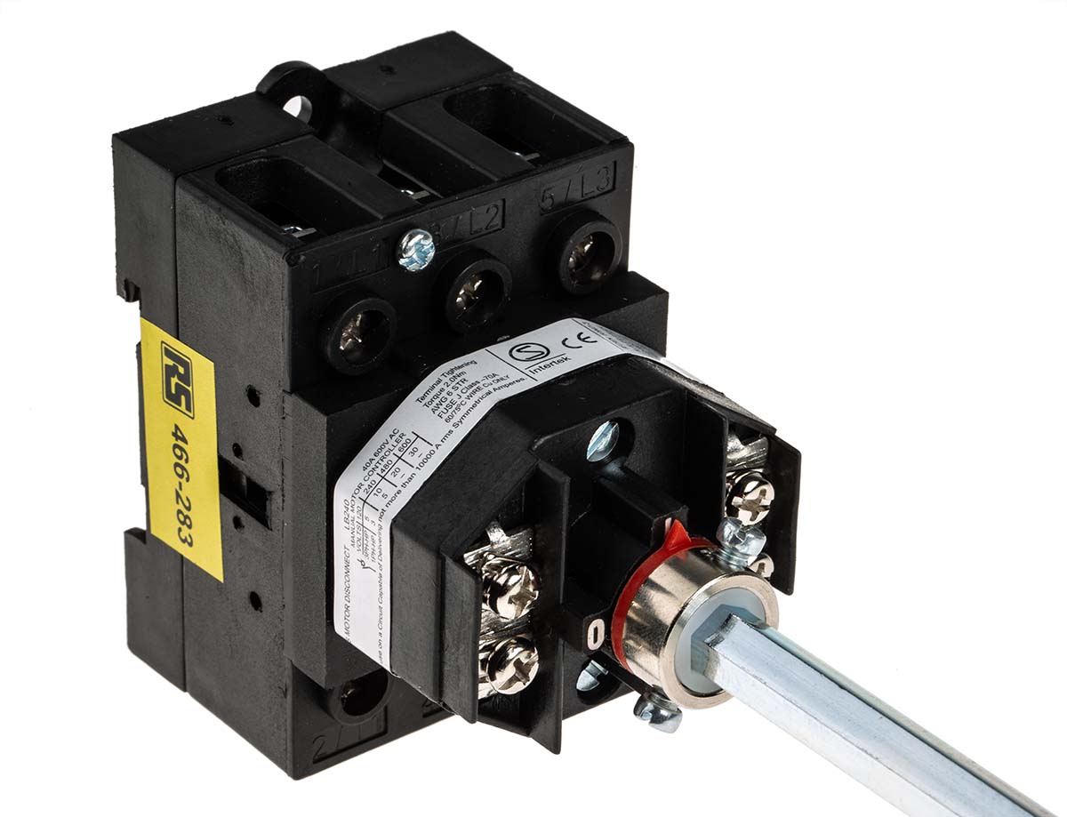 This is 3 Pole DIN Rail Non Fused Isolator Switch 63 A 22 kW IP65 manufactured by RS Pro. The manufacturer part number is 466-277. The product is available in din rail configuration. It has a maximum operating temperature of +40°c. Moreover, the product has a nominal 750v voltage rating. Its accurate length is 175mm. Furthermore, the product is 125mm wide. The product comes in 90mm depth. Whereas, the minimum operating temperature of the product is -25°c. It has equipped with 3p poles. The terminal is a screw type.