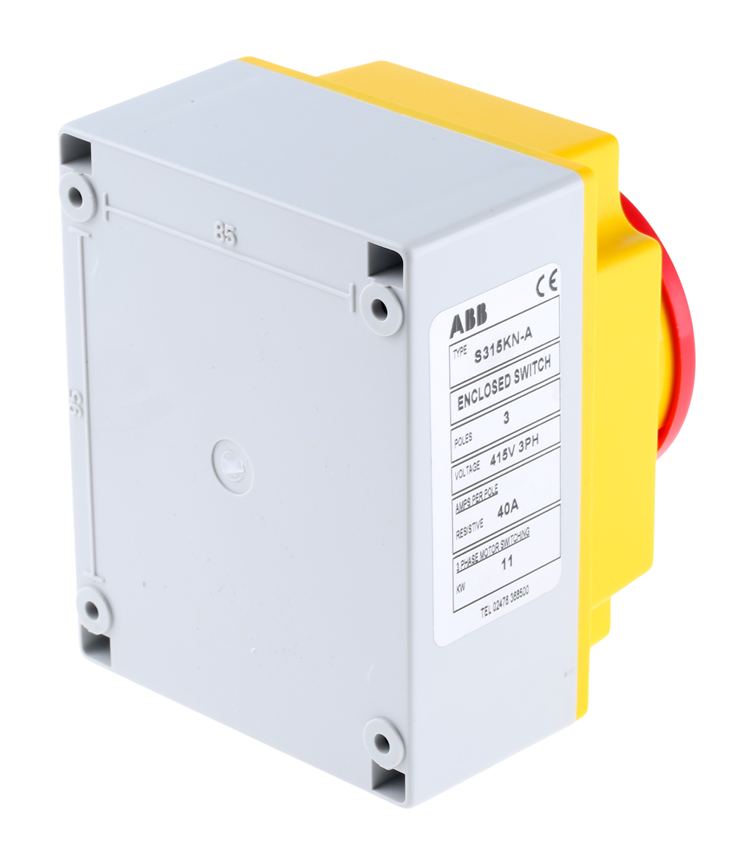 This is 3 Pole Non Fused Isolator Switch - 40 A Maximum Current 15 kW Power Rating IP65 manufactured by ABB. The manufacturer part number is S315KN-A S315KN. Its accurate length is 125mm. Furthermore, the product is 100mm wide. The product comes in 107mm depth. It has equipped with 3p poles.