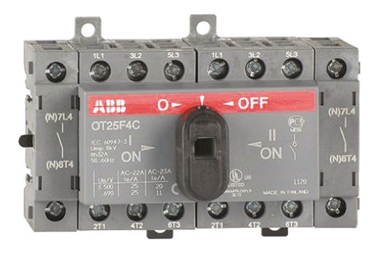 This is 4 Pole DIN Rail Non Fused Isolator Switch - 25 A Maximum Current manufactured by ABB. The manufacturer part number is OT25F4C 1SCA104877R1001. The product is available in din rail configuration. It has equipped with 4p poles.