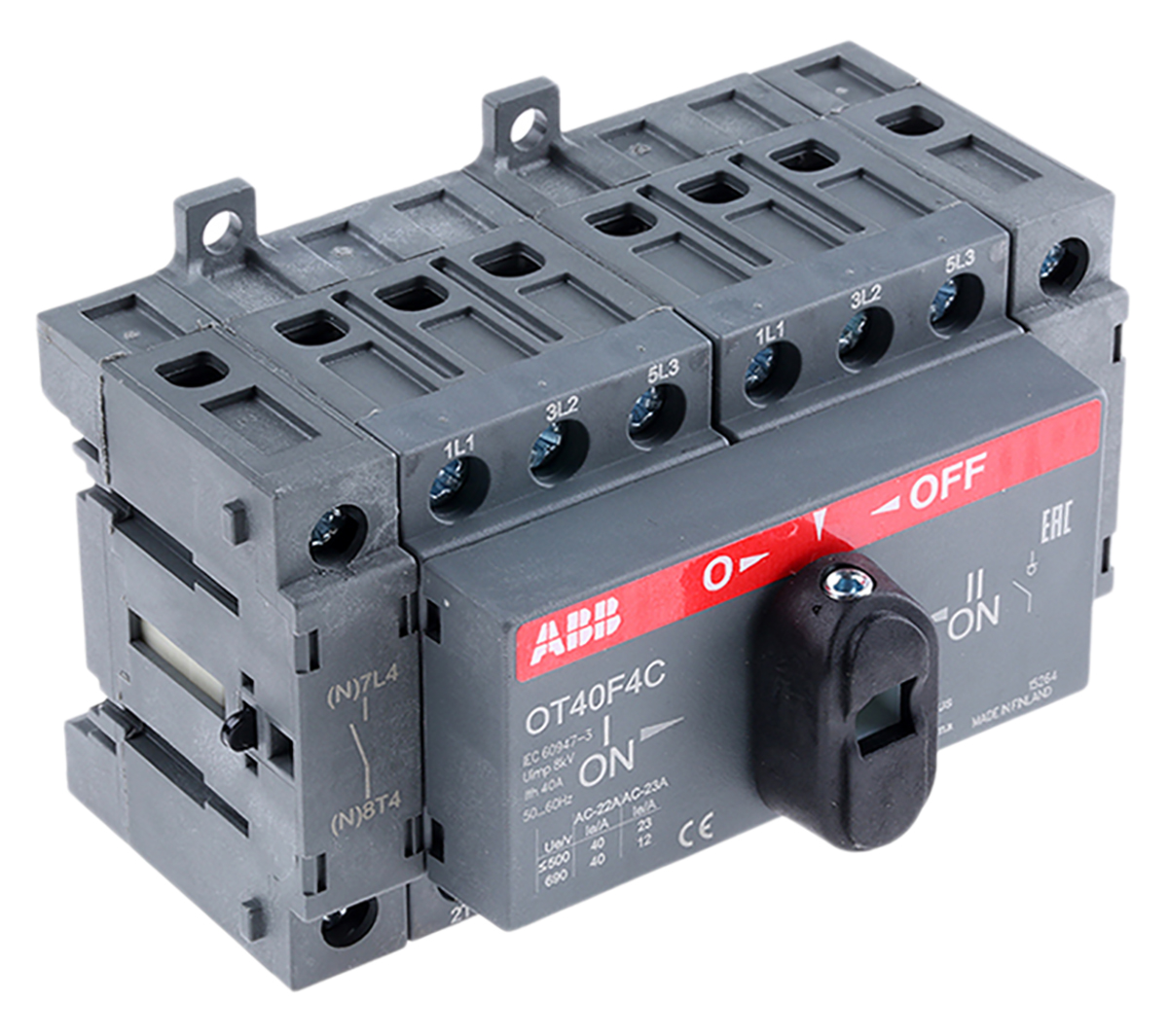 This is 4 Pole DIN Rail Non Fused Isolator Switch - 40 A Maximum Current manufactured by ABB. The manufacturer part number is OT40F4C 1SCA104934R1001. The product is available in din rail configuration. It has a maximum operating temperature of +40°c. Moreover, the product has a nominal 750v voltage rating. Its accurate length is 68mm. Furthermore, the product is 96mm wide. The product comes in 68mm depth. It has equipped with 4p poles.