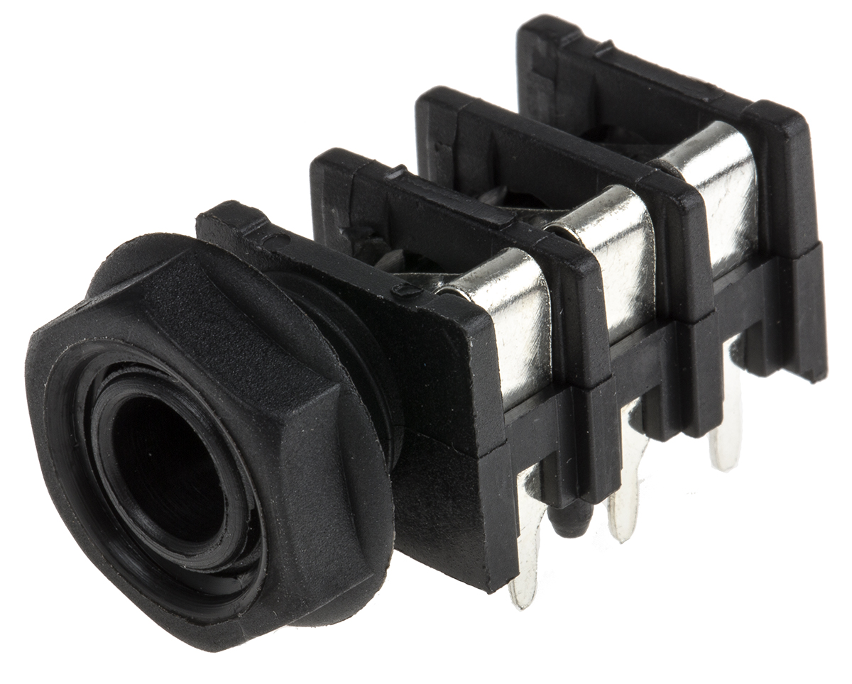 This is FCR Series PCB Mount Right Angle Stereo Jack 3 2 kV dc manufactured by RS Pro. The manufacturer part number is 111-5769. The product is available in pcb mount configuration. Moreover, the product has a nominal 2 kv dc voltage rating. In addition, female is the available "Gender" of the product. The product also features robust plastic housing material. The product is made from sturdy brass materials. It comes in stereo configuration. The product is available in 6.35 mm size.