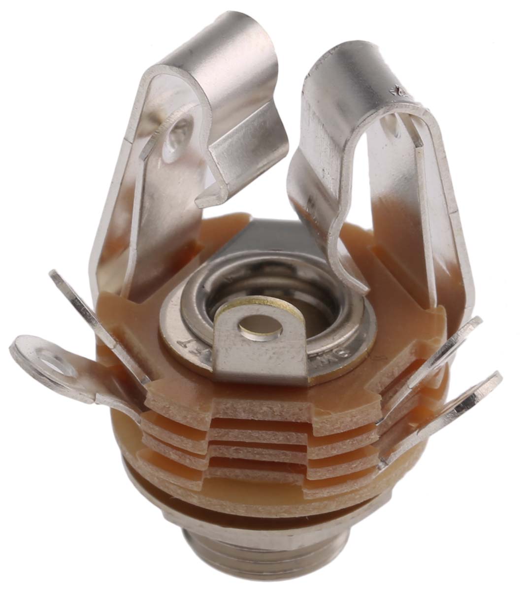This is Panel Mount Open Frame Jack 25 V dc 1A manufactured by Switchcraft. The manufacturer part number is 14B. The product is available in panel mount configuration. In addition, female is the available "Gender" of the product. The product also features robust copper alloy, nickel silver alloy housing material. The product is made from sturdy copper alloy materials. It comes in stereo configuration. The product is available in 6.35 mm size.