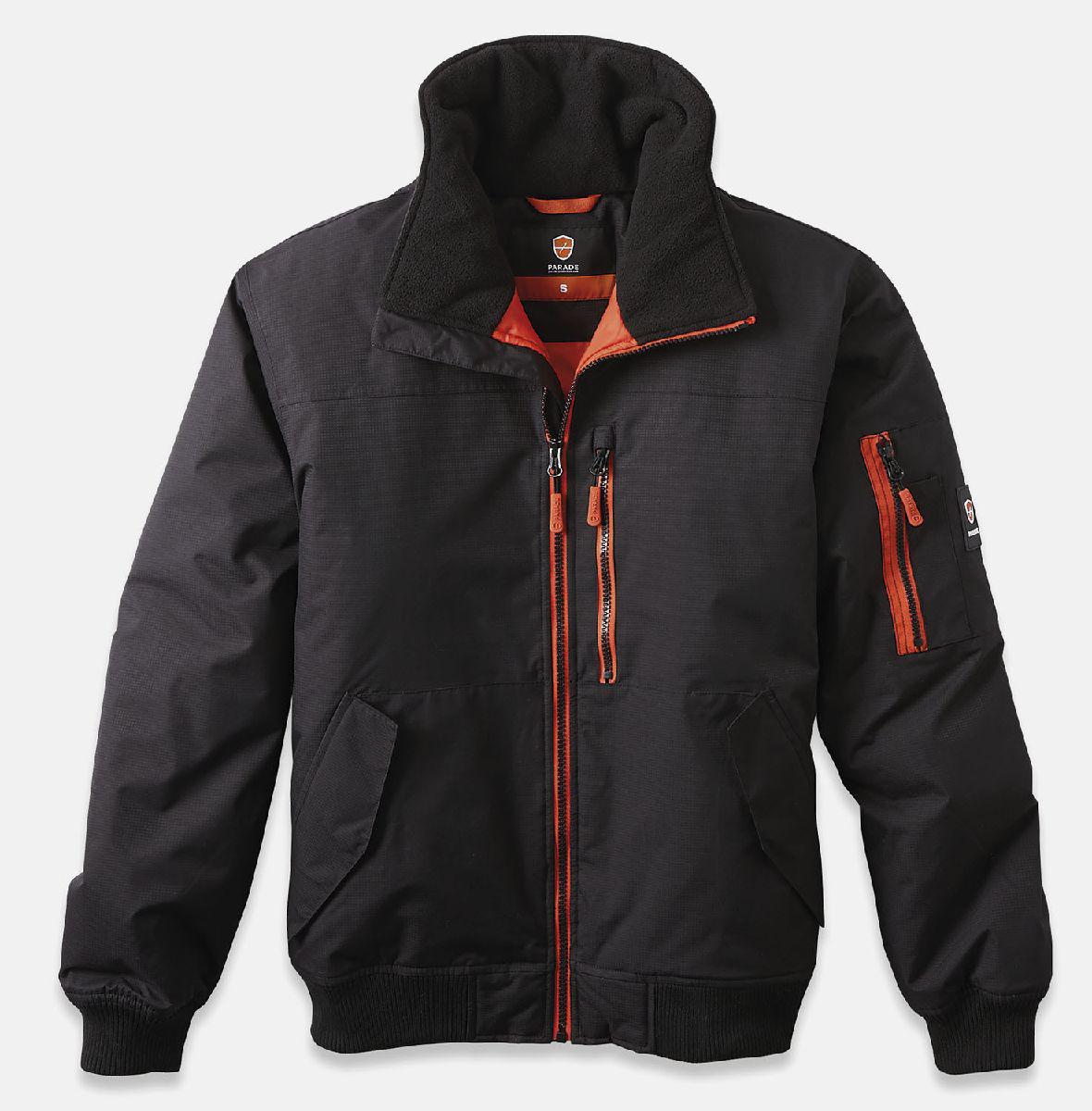 The Parade Ortego is a XL size work jacket, made with 100% nylon reinforcement. These jacket is 3000 schmerber water proofing and ribbed cuffs. Available in dark and navy colour. It is equipped with high collar, sleeve pocket and inside pocket. The jacket also has zip breast and cargo pockets, front flap pockets, zip and velcro inside pockets. Warm jacket, lined with orange parade-polyester, 160g wadding Zip breast and cargo pockets, front flap pockets, zip and velcro inside pockets Scuffs-resistant reinforcement at the back of the collar Ribbed at the cuffs and bottom Fleece-lined parade coll