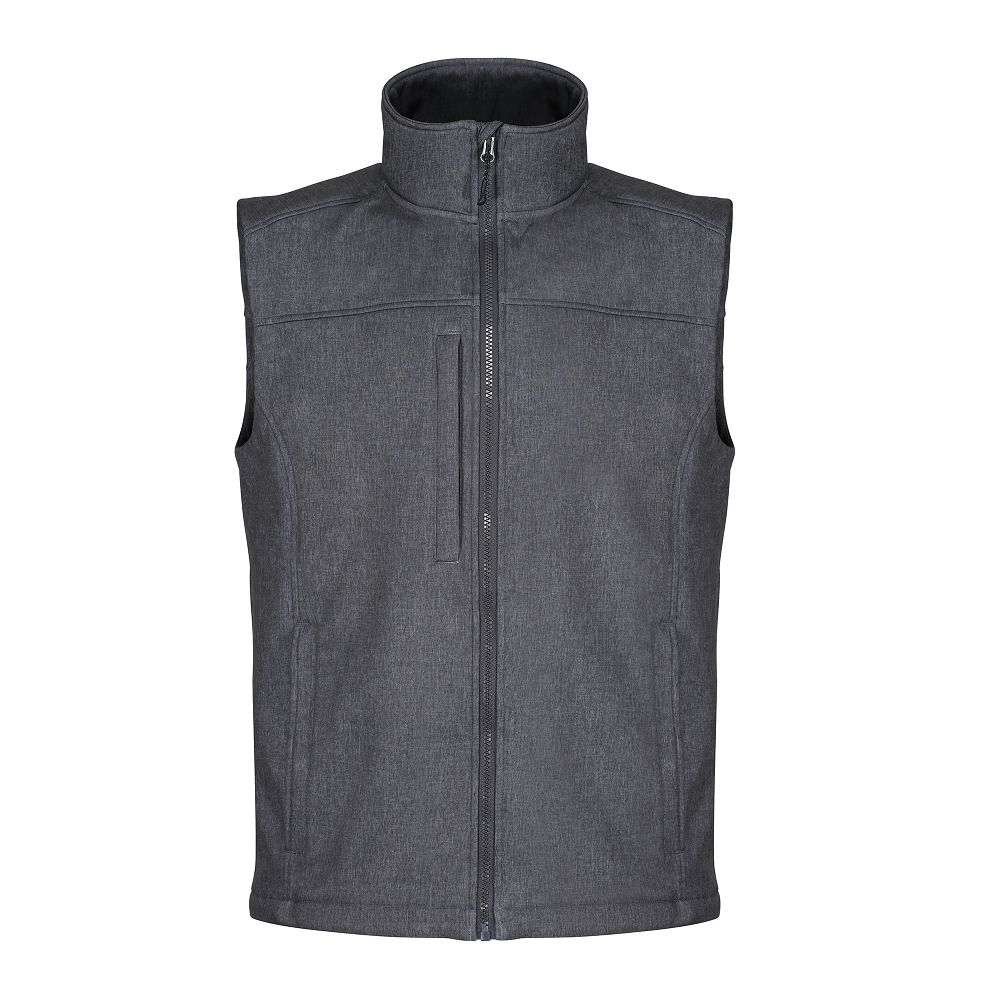 The Regatta TRA788 Flux Softshell body warmer is constructed from woven stretch softshell fabric with a durable water resistant finish. Wind resistant, quick drying, super soft handle fabric. Two zipped lower pockets and one chest pocket. Adjustable shock Colour Grey Size Small