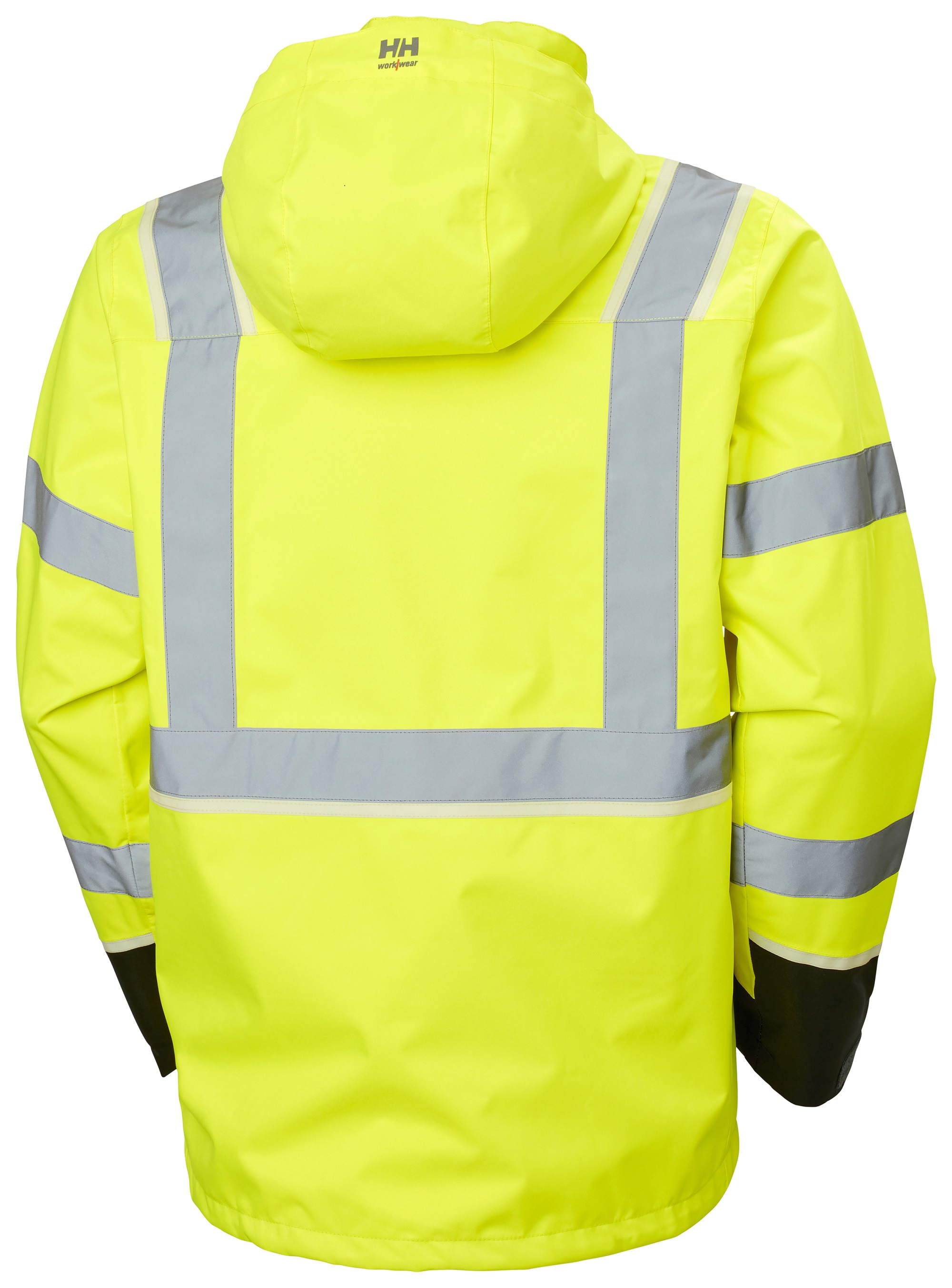 UC-ME Hi Vis Yellow Shell Jacket with VizLite Phosphorescent Technology UC-ME is the latest addition to the hi vis line of Helly Hansen Workwear. Focusing on lightweight fabrics, necessary features and safety – UC-ME is the perfect choice for the end user wanting comfort, simplicity and superior visibility. UC-ME utilizes VizLite which is a phosphorescent technology that absorbs UV light energy from natural or artificial light which is then emitted as an afterglow in low light or no light conditions. Perfect for dark environments with little to no ambient light. Features and Benefits EN ISO 20471:2013 Class 3. EN 343:2019 Class 3,3. Detachable hood. Vertical and horizontal hood adjustment. Helmet compatible hood. No shoulder seams. Brushed polyester inside collar. YKK® front zipper with chin protector. Napoleon pocket, no need to open the jacket to access. Hand pockets with YKK® zipper. Embellishment zipper. Articulated sleeves for optimal mobility. Adjustable cuffs. Adjustable hem with elastic drawcord inside hand pocket. ID card loop. Extended back for improved comfort The Helly Hansen UC-ME shell jacket available in yellow colour. It has napoleon pocket, no need to open the jacket to access. Also contains articulated sleeves for optimal mobility and extended back for improved comfort. YKK® front zipper with chin protector Adjustable hem with elastic drawcord inside hand pocket ID card loop Brushed polyester inside collar
