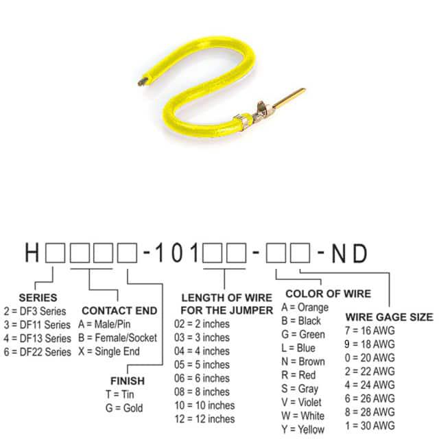 This is manufactured by Hirose Electric Co Ltd. The manufacturer part number is H3AXG-10102-Y4. It is assigned with possible HTSUS value of 8544.42.9090. The product is rohs compliant. It features 1 conductors. It comes in 1 of rows. It is also integrated with a pin to cable (round) contact end. It is shipped in bulk. Moreover, the product has a wire gauge of 24 awg. Furthermore, the product is galvanized with excellent gold contact finishing. Its typical moisture sensitivity level is 1 (unlimited). Its accurate length is 2.00" (50.80mm). It has a classic yellow colour. The product df11, is a highly preferred choice for users. Moreover, it corresponds to h3axg, a base product number of the product. The product is designated with the ear99 code number